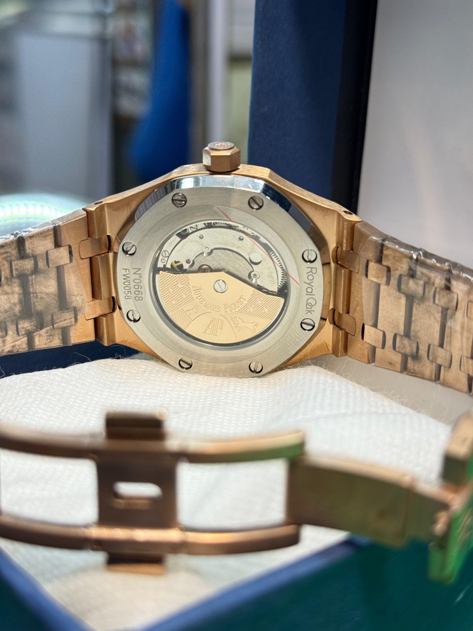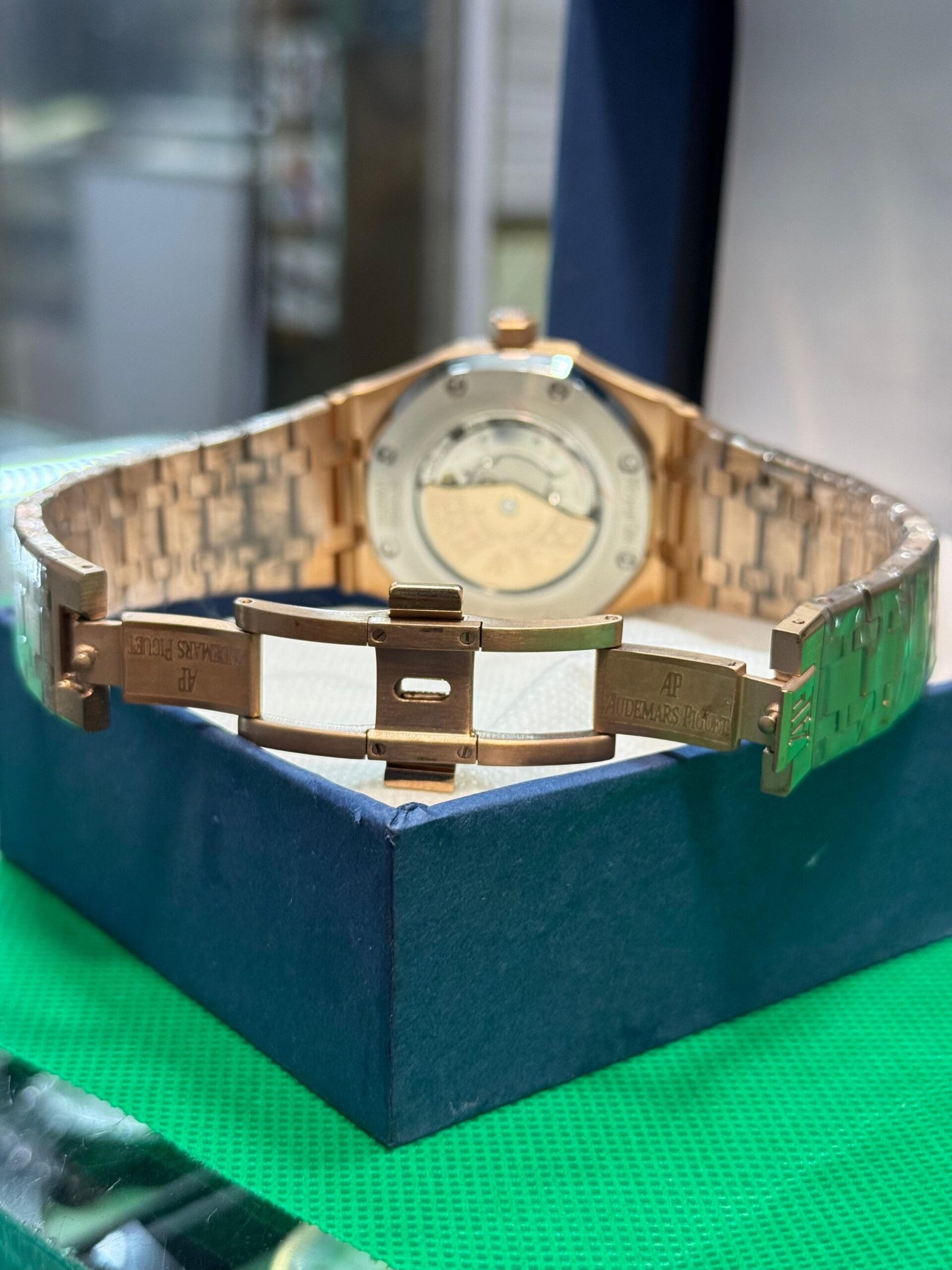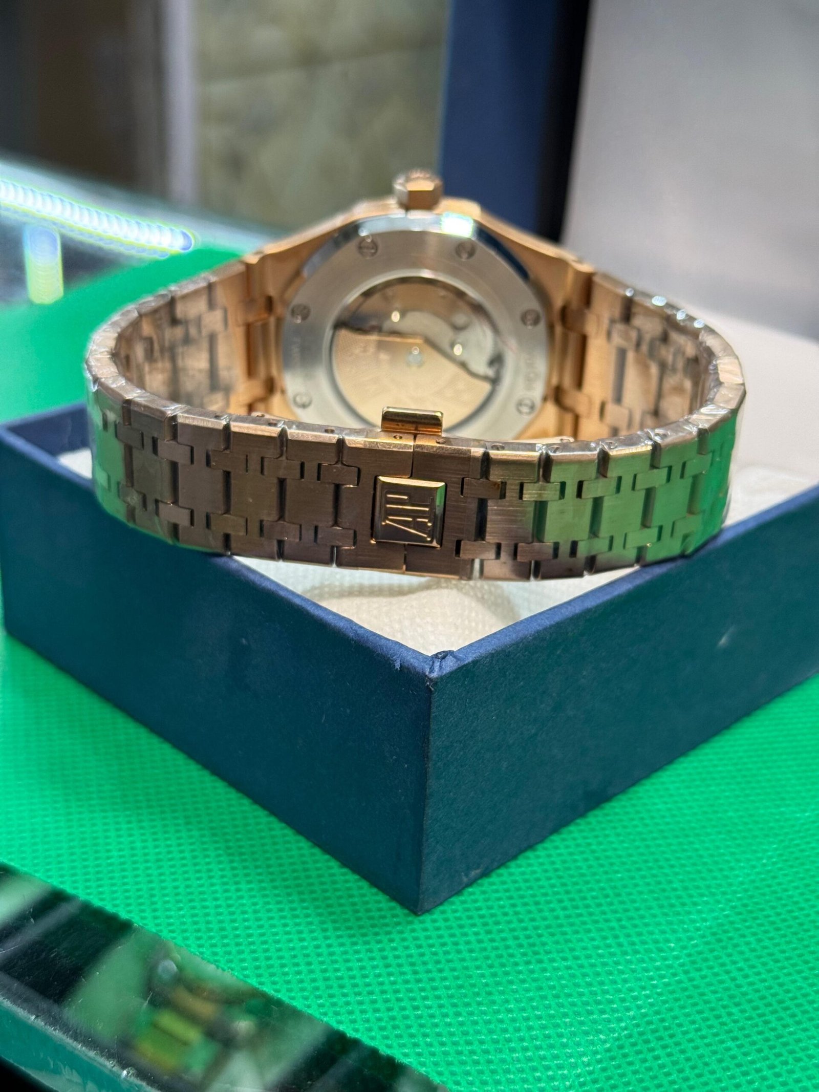 | Strap | Integrated Link Bracelet with Signature AP Butterfly Deployment Clasp |