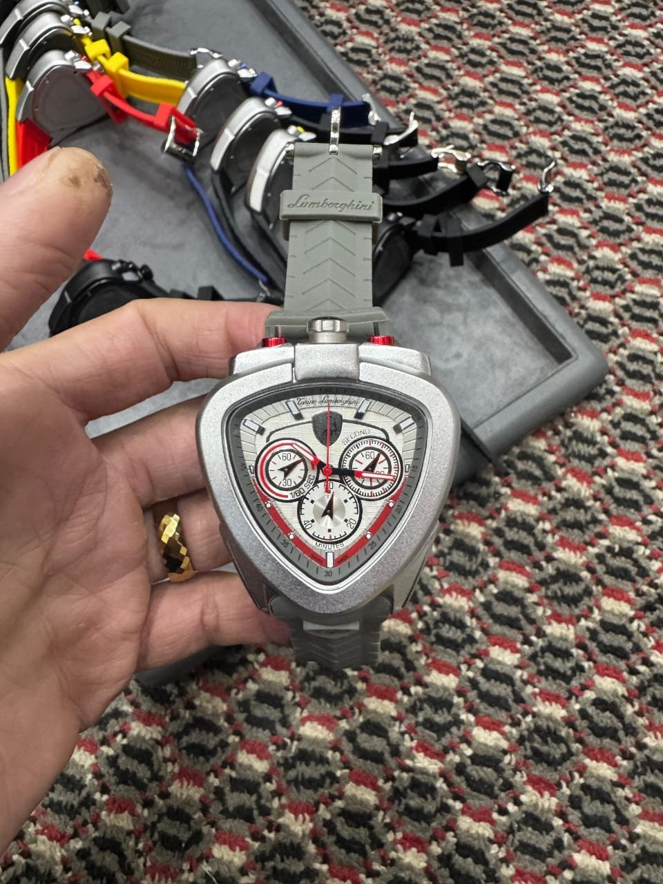 Based on the images, here is the professional product description for the Lamborghini Chronograph collection, including the specific color details and the quality note.