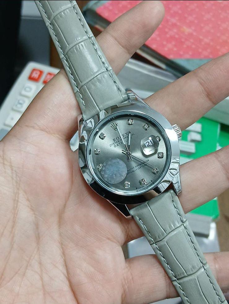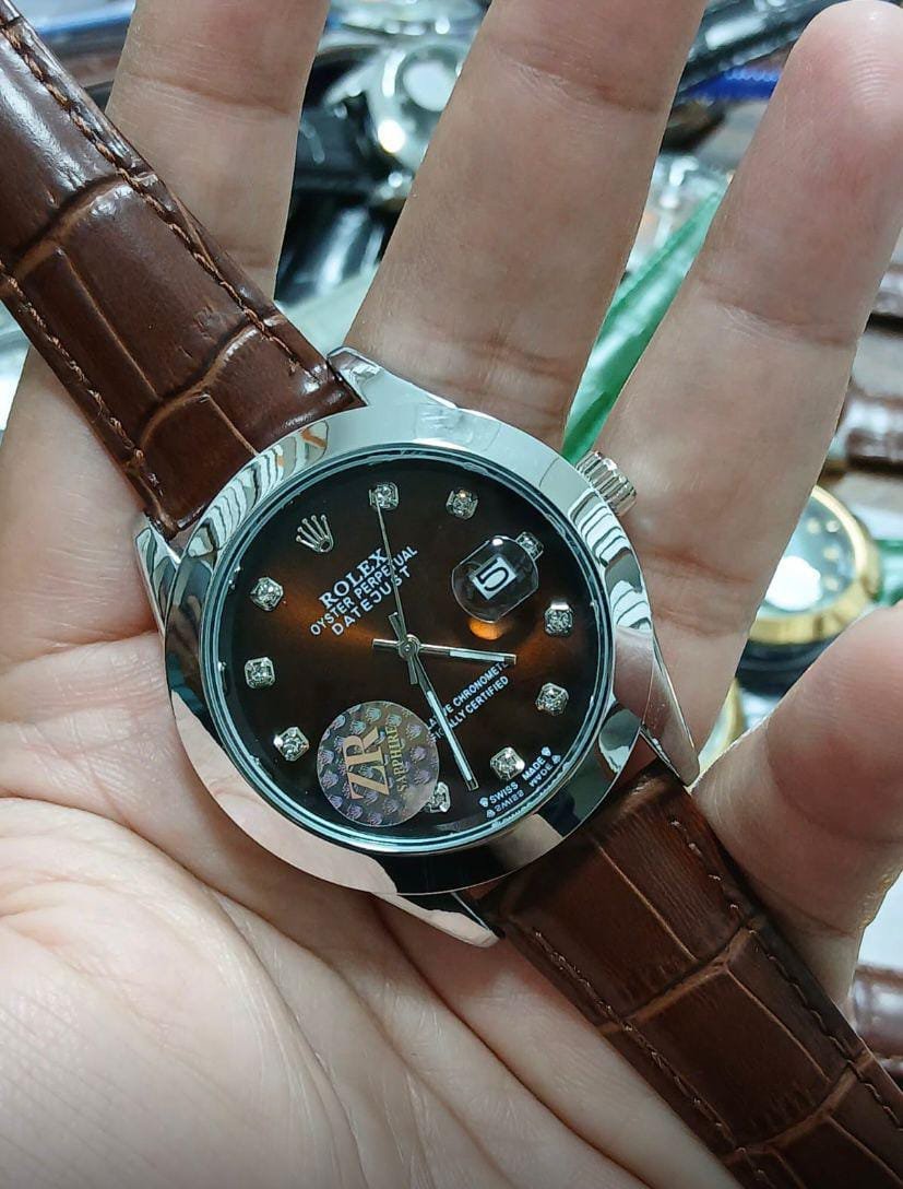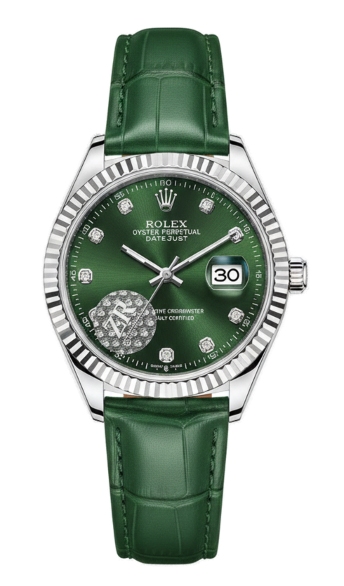 Rolex Datejust Green Dial Diamond Studded Leather Strap Watch